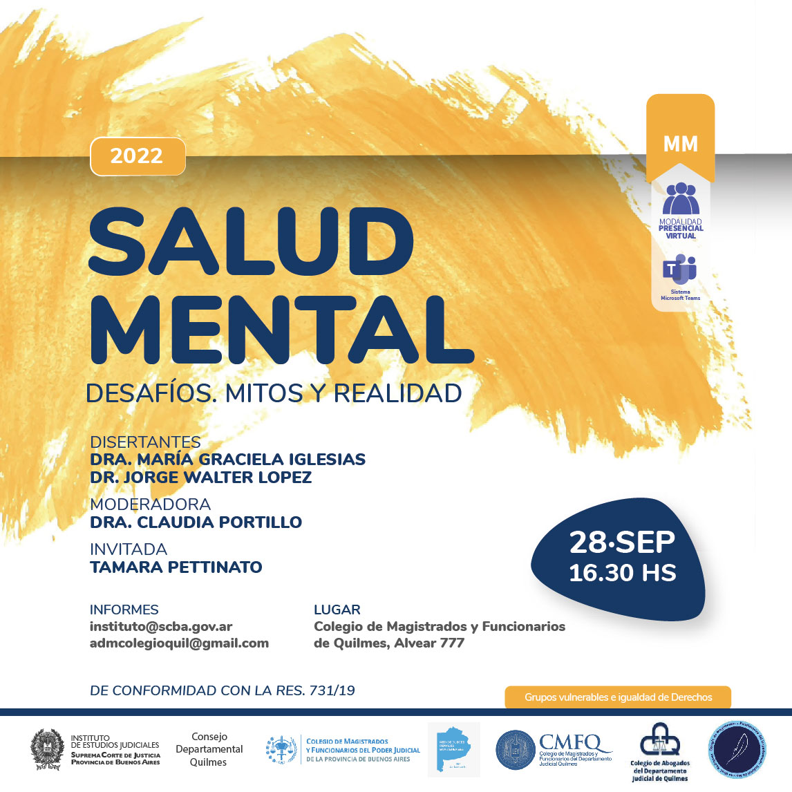 Organizado junto al Colegio de Magistrados y Funcionarios de la Provincia de Buenos Aires, la Red de Jueces Penales, el Colegio de Magistrados y Funcionarios de Quilmes, el Colegio de Abogados de Quilmes, el Consejo Dtal de Quilmes y el Colegio de Magistrados y Funcionarios de Moreno Gral Rodriguez, de conformidad con la Res. 731/19