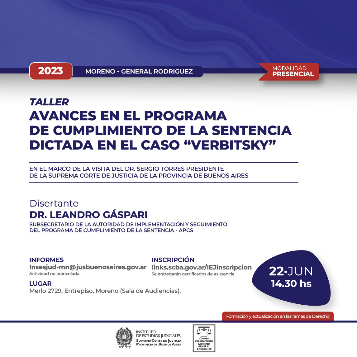 MORENO GRAL. RODRIGUEZ - Avances en el Programa de Cumplimiento de la Sentencia dictada en el caso "Verbitsky"