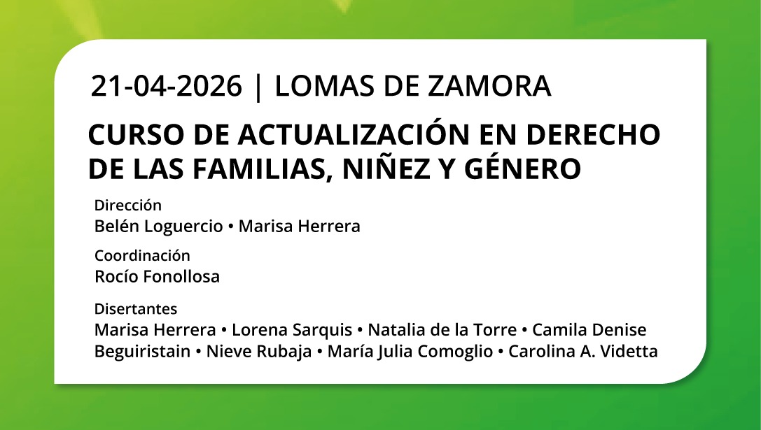 21-04-2026 | LOMAS DE ZAMORA - Curso de actualización en Derecho de las Familias, Niñez y Género