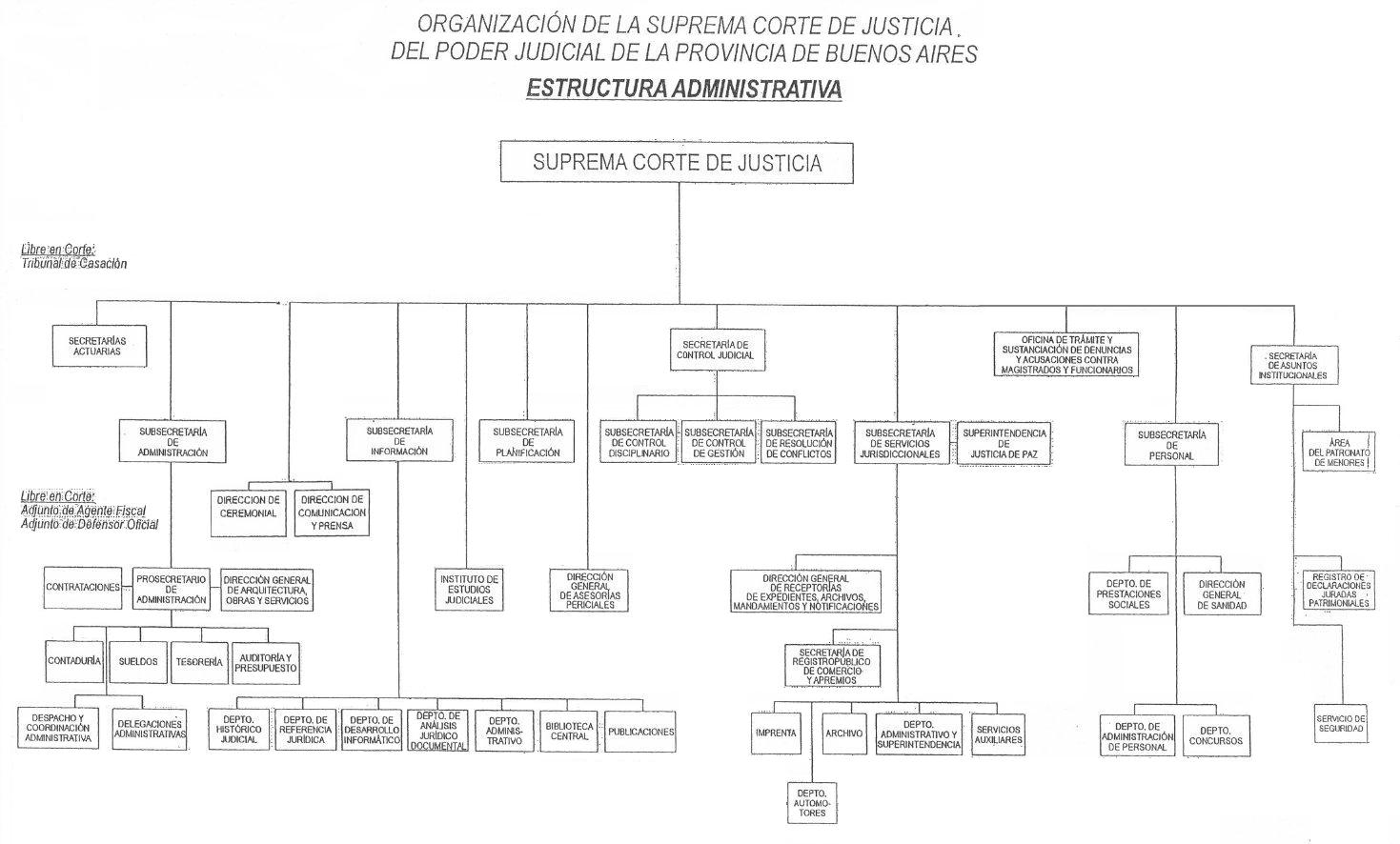 Con fecha 14-6-2006, la Suprema Corte de la Provincia de Buenos Aires, por Resolución 1354/06, resolvió sobre los recaudos que deben cumplirse en la remisión de correspondencia en el ámbito del Poder Judicial y ordenó la publicación del organigrama del Superior Tribunal.