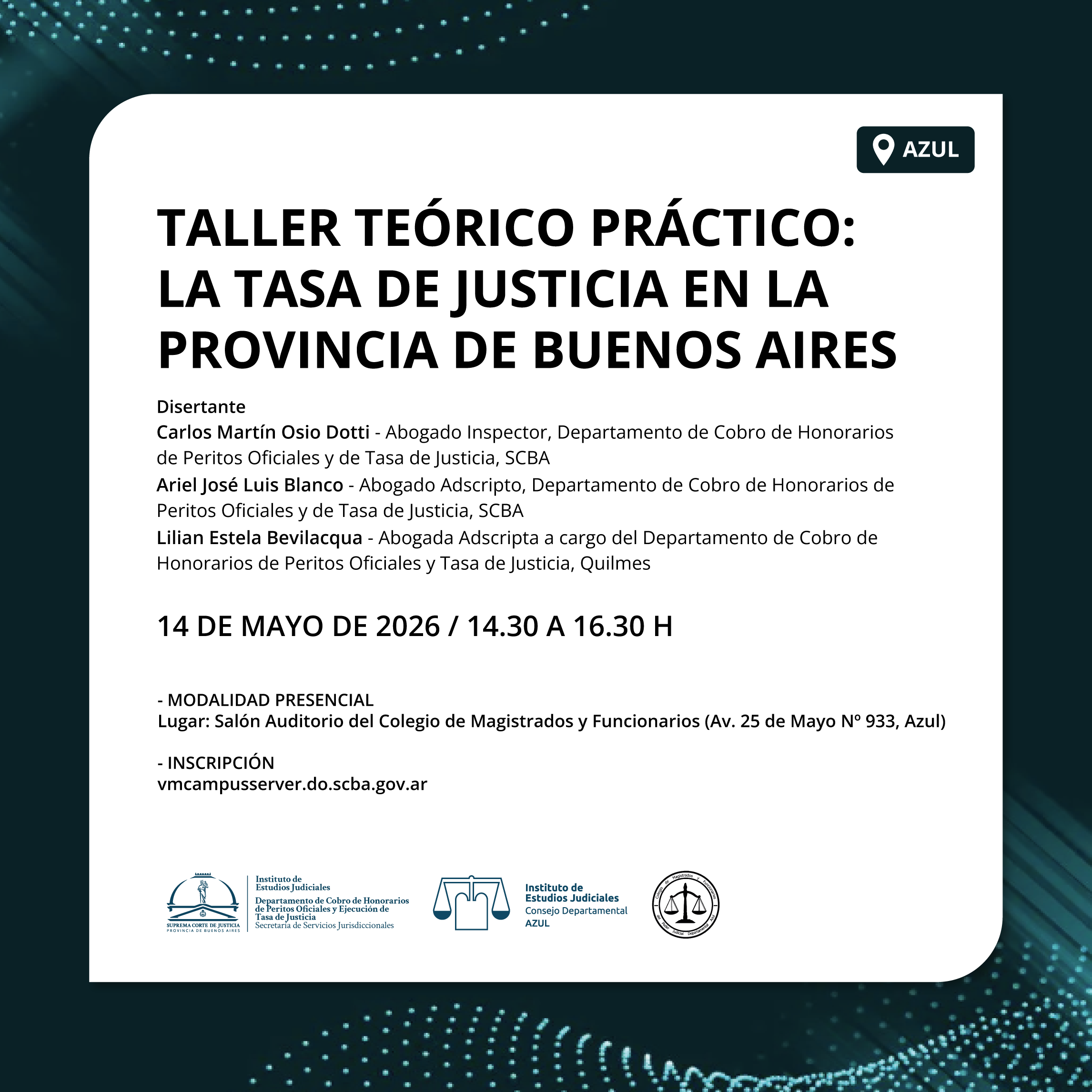 14-05-2026 | AZUL - Taller teórico práctico: La tasa de Justicia en la Provincia de Buenos Aires