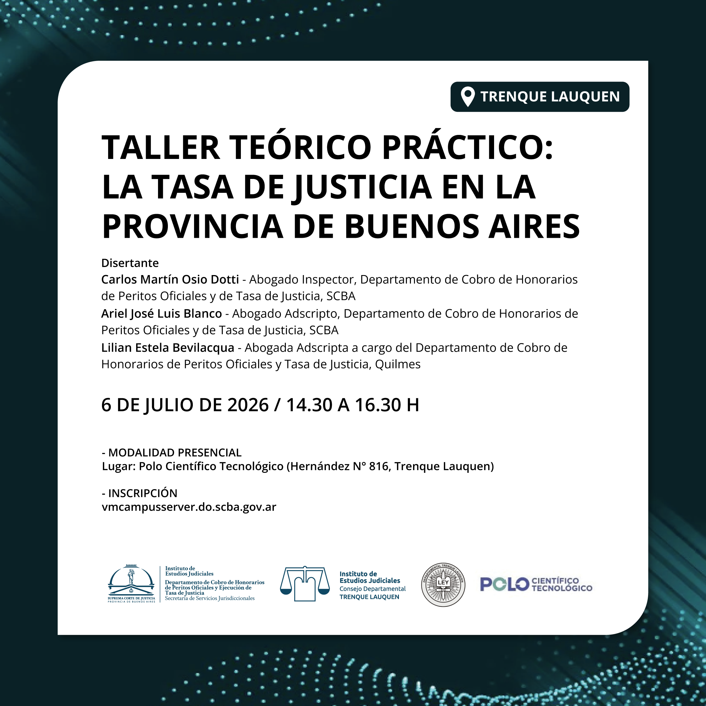 06-07-2026 | TRENQUE LAUQUEN - TALLER TEORICO PRÁCTICO LA TASA DE JUSTICIA EN LA PROVINCIA DE BUENOS AIRES