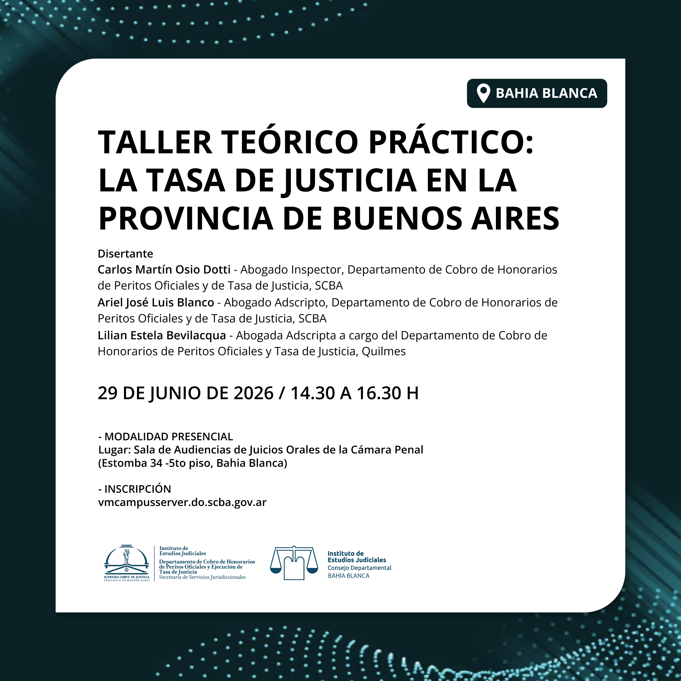 29-06-2026 | BAHIA BLANCA - Taller teórico práctico: La tasa de Justicia en la Provincia de Buenos Aires