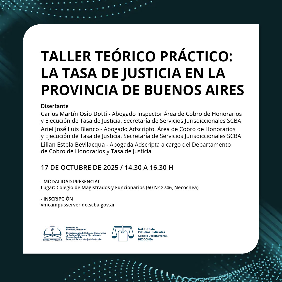 17-10-2025 | NECOCHEA - Taller teórico práctico: La tasa de Justicia en la Provincia de Buenos Aires