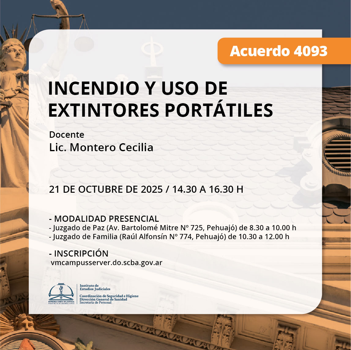 Destinatarios: Quienes desempeñan funciones y tareas en los Juzgados de Paz de Ameghino, General Pinto, Lincoln, Leandro Alem, Viamonte y Chacabuco.