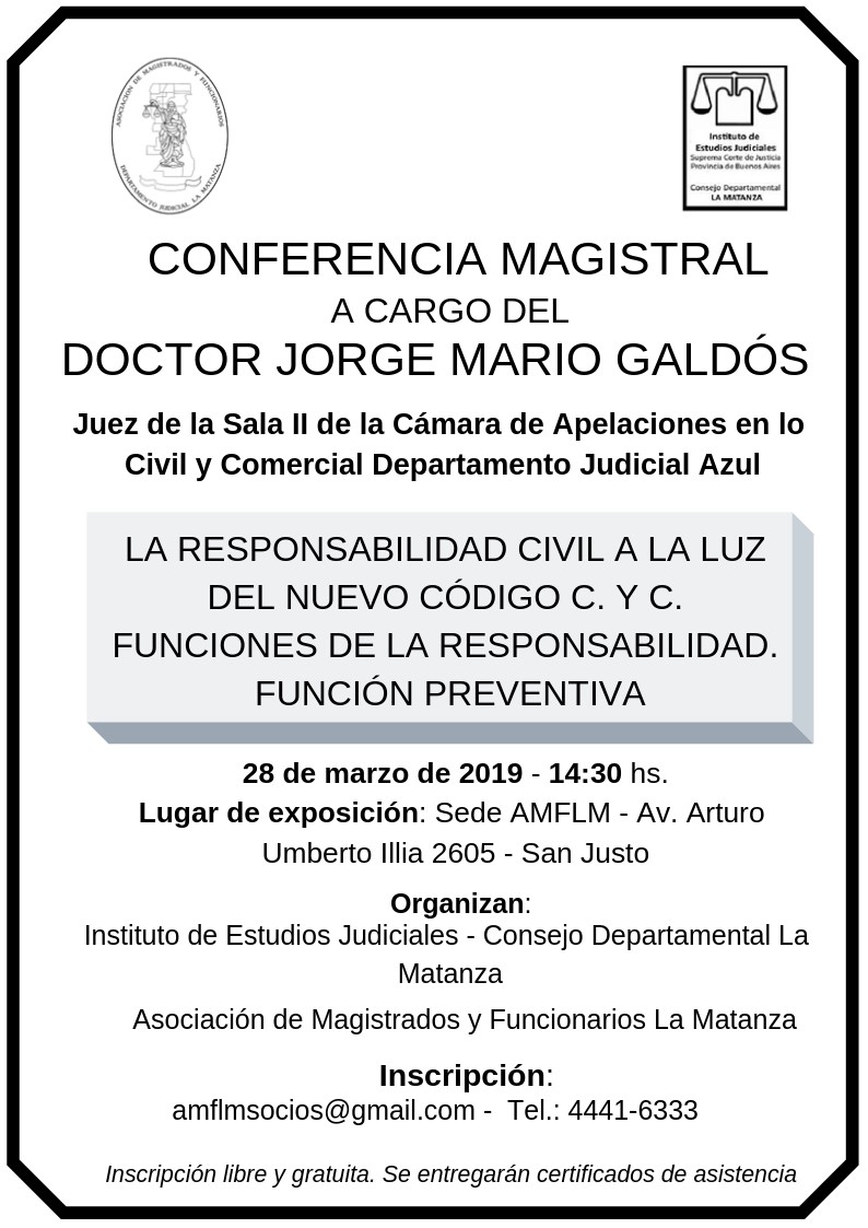 28-03-2019 | LA MATANZA - La responsabilidad civil a la luz del nuevo Código Civil y Comercial. Funciones de la responsabilidad. Función preventiva