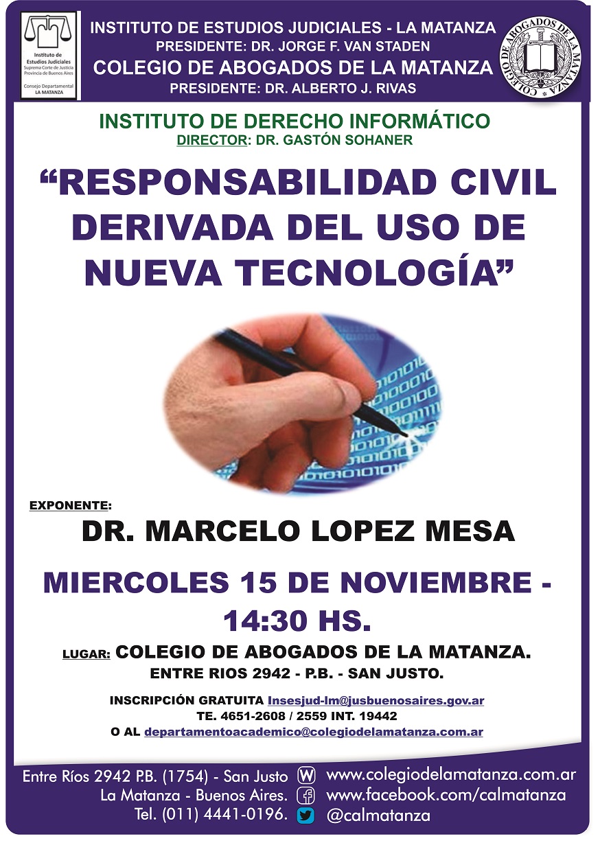 15-11-2017 | LA MATANZA - Responsabilidad civil derivada del uso de nueva tecnologia.