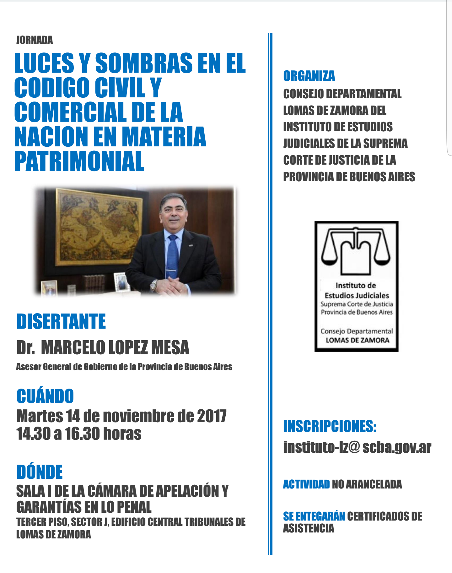 14-11-2017 | LOMAS DE ZAMORA - Jornada sobre Derecho Civil. Luces y sombras en el Código Civil y Comercial de La Nación en materia patrimonial.