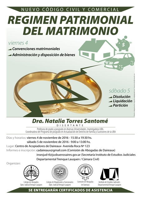 08-11-2016 | SAN ISIDRO- Divorcio y régimen patrimonial del matrimonio.