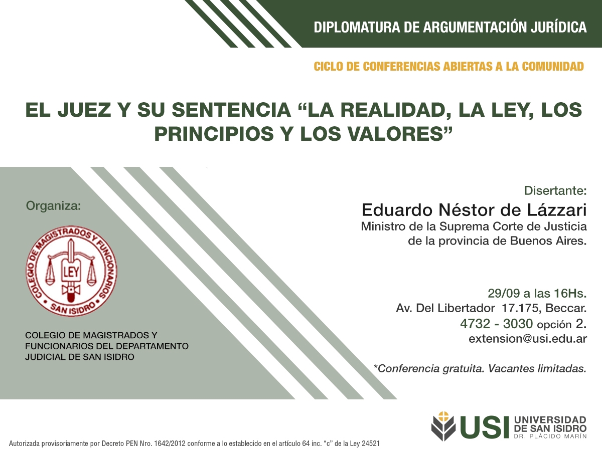 Organizado por la Diplomatura de Argumentación Jurídica de la Universidad de San Isidro y el Colego de Magistrados y Funcionarios de San Isidro.