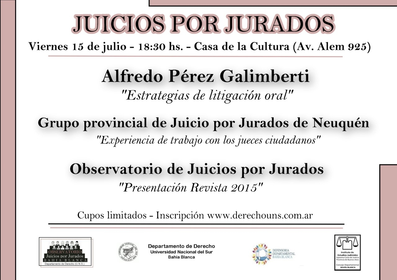15-07-2016 | BAHIA BLANCA- Jornada de capacitación sobre Juicio por Jurados.