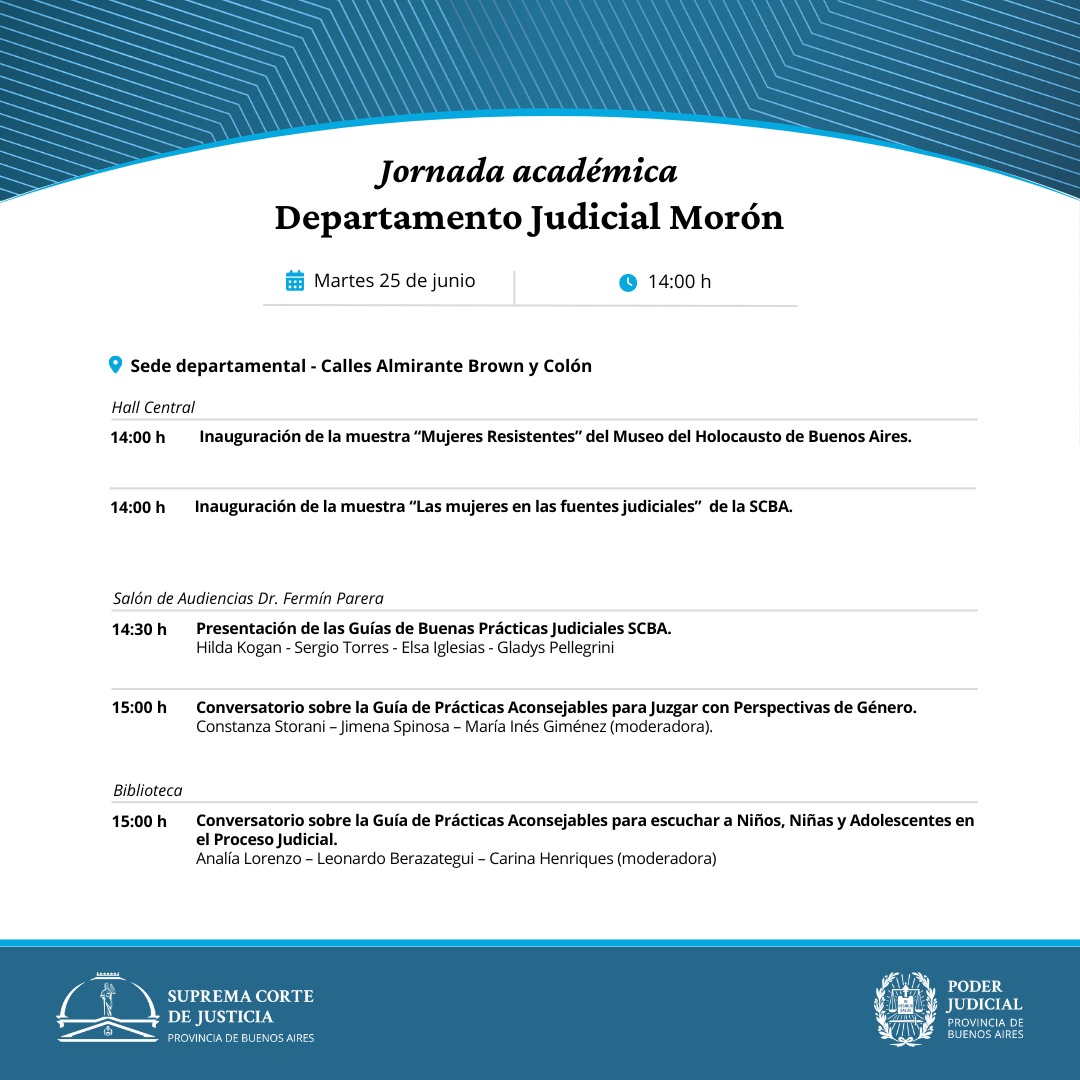 Organizado de conformidad con la Res.707/2019 y Res. 825/21, junto al Colegio de Magistrados y Funcionarios de Mercedes, el Consejo Departamental de Mercedes , la Escuela Judicial del Consejo de la Magistratura y el Ministerio de Mujeres y Diversidad
