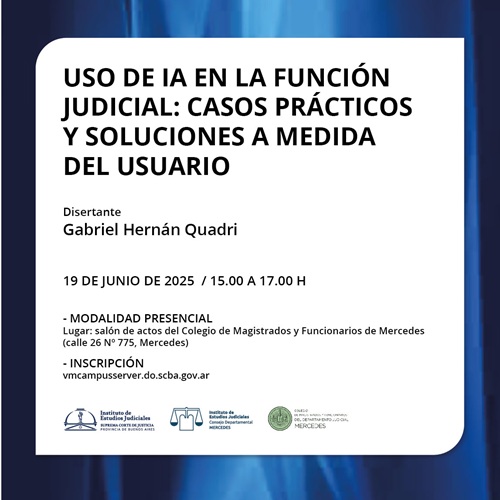 Actividad a realizarse bajo la modalidad presencial, en el Salón de actos del Colegio de Magistrados y Funcionarios de Mercedes (Calle 26 Nº 775, Mercedes).