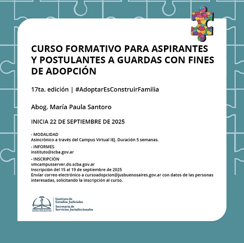 Actividad a realizarse bajo la modalidad mixta: 4 hs. presenciales el 30/9, en la Casa de la Provincia de Buenos Aires (Avenida San Martin Nº3768, entre 8 y 9, de la localidad de Colón) y 4 semanas bajo la modalidad virtual, a través del Campus Virtual del IEJ.