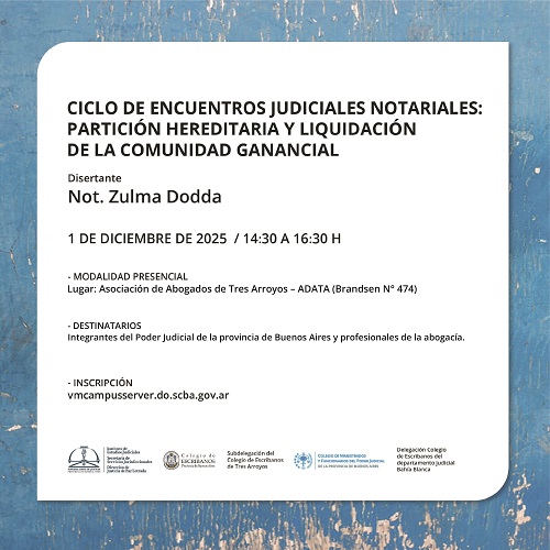 Actividad a realizarse bajo la modalidad presencial, en la Delegación del Colegio de Escribanos de Bahía Blanca (Belgrano Nº 252).