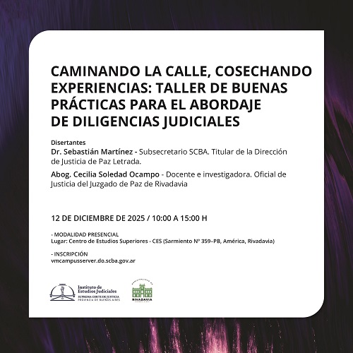 Cursos y jornadas organizados por el Instituto de Estudios Judiciales a desarrollarse entre el 2 y el 11 de diciembre de 2025.