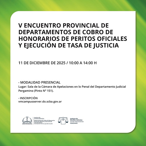 Actividad a realizarse bajo la modalidad presencial, en el Colegio de Abogados del Departamento Judicial Pergamino (Rivadavia Nº 328)
