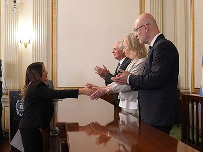 ![]() Acto de jura de magistrados de la departamental Dolores Ampliar >>La presidenta de la Suprema Corte de Justicia Hilda Kogan, junto al vicepresidente Sergio Gabriel Torres, encabezaron el acto de jura y toma de posesión de cargos de nuevos magistrados del Departamento Judicial Dolores. |
