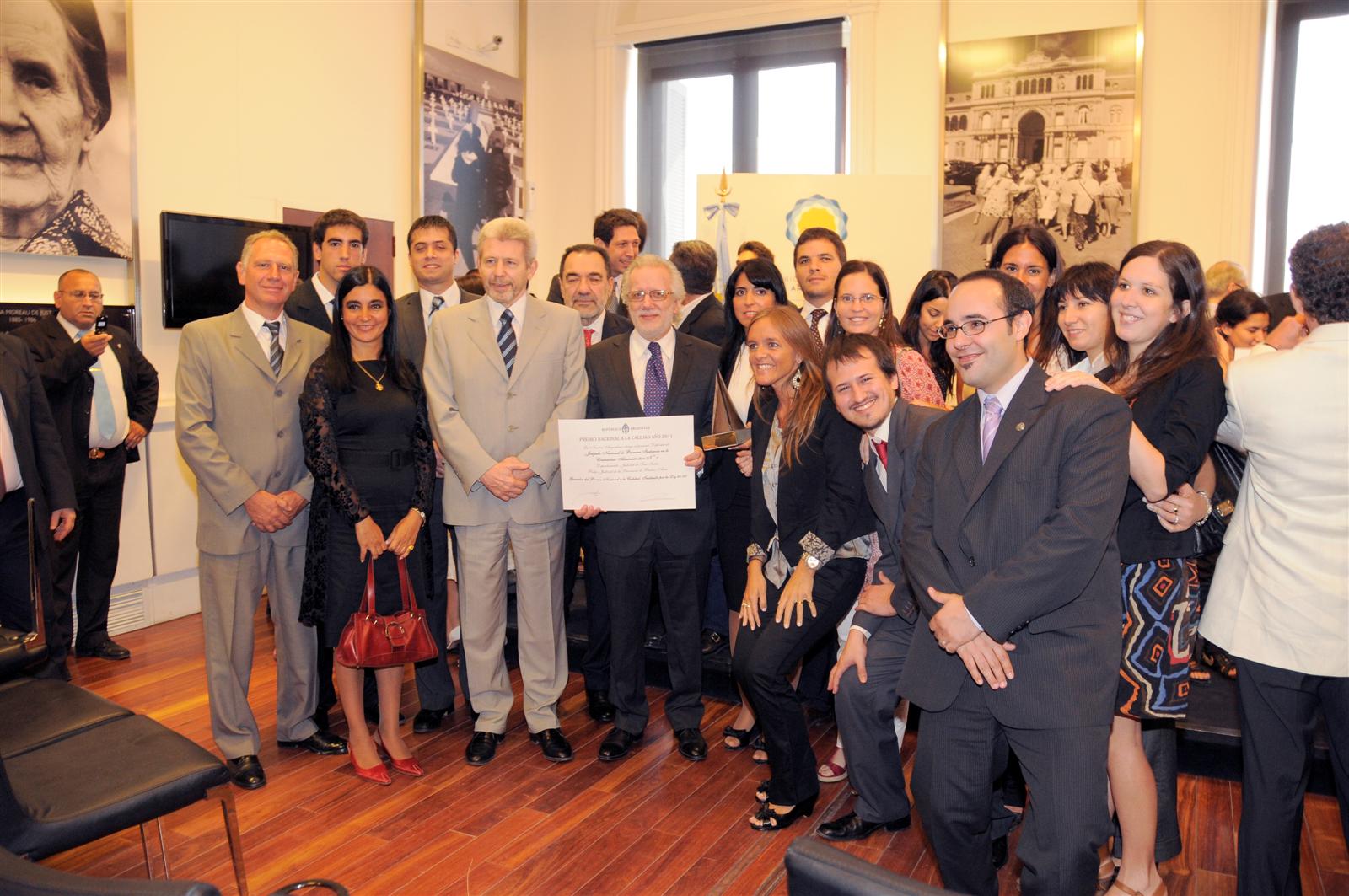 El Juzgado en lo Contencioso Administrativo Nº 1 de San Isidro recibió el Premio Nacional a la Calidad (PNC). Se trata de la primera dependencia judicial de la Provincia de Buenos Aires en ser distinguida con el reconocimiento instituido por Ley 24.127 y el único organismo de la Administración Pública en obtenerlo en la edición 2011. Otorgado por Presidencia de la Nación, el PNC promueve y reconoce a empresas del sector privado y organismos públicos que desarrollan procesos y sistemas destinados al mejoramiento continuo en sus productos y servicios. En este caso, el galardón fue entregado al juez titular del Juzgado Contencioso Administrativo Nº 1 de San Isidro, José Abelardo Servín, durante un acto realizado en la Casa Rosada que encabezó -en representación de la Presidenta de la Nación- el (ex) Jefe de Gabinete de Ministros, Aníbal Fernández, y que contó con la participación del Ministro de Educación, Alberto Sileoni, y el Presidente de la Suprema Corte de Justicia, Eduardo Pettigiani, entre otras autoridades. Al término de la ceremonia, el doctor Pettigiani señaló: "Se trata de un logro muy importante del cual nos sentimos un poco parte y que tiene que llenar de orgullo a quienes han sido galardonados". El titular de la Corte agregó que el Juzgado premiado muestra "Los valores humanos y atributos de gestión que se impulsan y que deben caracterizar a la Justicia de nuestra Provincia". Justamente, a través del Instituto de Estudios Judiciales, la Suprema Corte de Justicia asiste desde hace varios años al organismo galardonado, tanto en el desarrollo de su sistema de trabajo, como en la facilitación de los ámbitos de difusión de los conceptos de calidad implementados. Por su parte, el doctor Servín afirmó: "El grupo humano que forma el plantel del juzgado se constituye en el sostén natural de su funcionamiento y lo jerarquiza con su sentido de justicia y excelencia", y añadió que el PNC, "no es para nosotros un objetivo en si mismo, sino un reconocimiento que nos incentiva a seguir mejorando". Denominado HORA o sistema de Horizontalidad Radial, el sistema de gestión que aplica el Juzgado premiado se caracteriza por la alta rotación de funciones y lugares; la capacitación; el diálogo intra y extra organismo; respeto por plazos y pautas procesales; la generalización, a efectos de que una misma causa o un mismo tema, pueda ser seguido por cualquier miembro del organismo; y la existencia de circuitos internos de expedientes debidamente pautados.