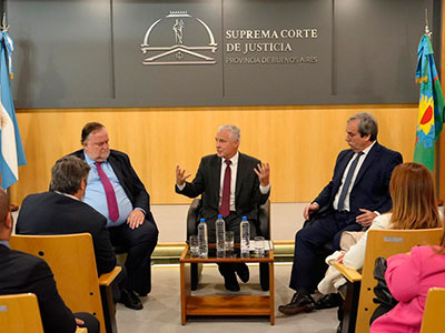 El presidente de la Suprema Corte de Justicia, Sergio Torres, mantuvo una reunión con las autoridades del Colegio de Magistrados y Funcionarios de la Provincia (CMF) y representantes de los colegios de dicho estamento pertenecientes a cada uno de los departamentos judiciales.
