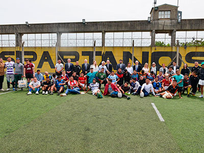 El presidente de la Suprema Corte de Justicia, Daniel Fernando Soria, junto al vicepresidente de la Corte Suprema de Justicia de la Nación, Carlos Rosenkrantz, y el ministro de Justicia y Derechos Humanos provincial, Juan Martín Mena, participaron de actividades que desarrolla la Fundación Espartanos en la Unidad Penitenciaria 48 de San Martín.
