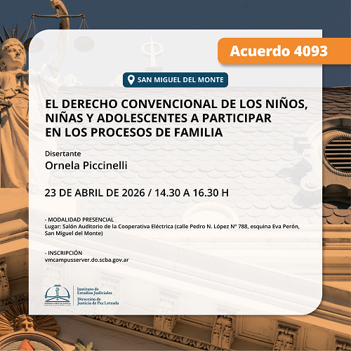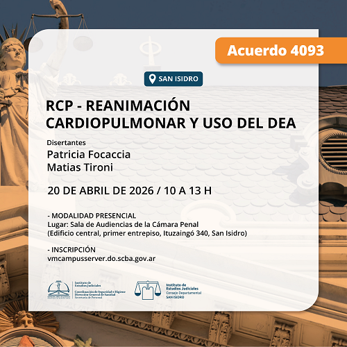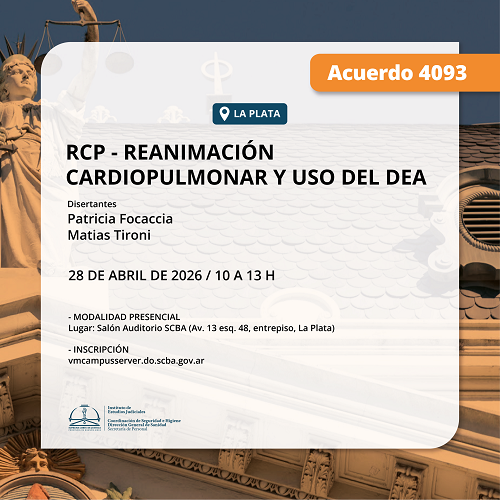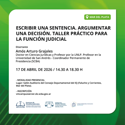 Actividad a realizarse bajo la modalidad presencial, en el Salón Auditorio SCBA (Av. 13 esq. 48, entrepiso, La Plata).