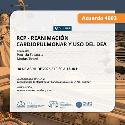 Actividad a realizarse bajo la modalidad presencial, en el Colegio de Magistrados y Funcionarios (Alvear Nº 777, Quilmes).