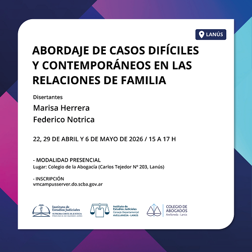 Actividad a realizarse bajo la modalidad presencial, en el Colegio de la Abogacía (Carlos Tejedor Nº 203, Lanús).
