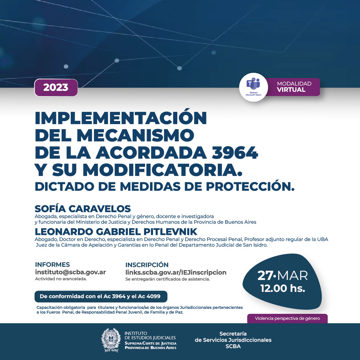 27-03-2023 | Implementación del mecanismo de la Acordada 3964 y su modificatoria. Dictado de medidas de protección ( a distancia )