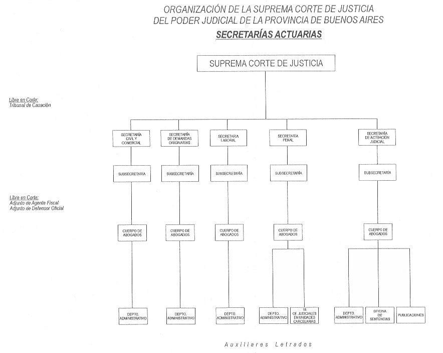 Con fecha 14-6-2006, la Suprema Corte de la Provincia de Buenos Aires, por Resolución 1354/06, resolvió sobre los recaudos que deben cumplirse en la remisión de correspondencia en el ámbito del Poder Judicial y ordenó la publicación del organigrama del Superior Tribunal.