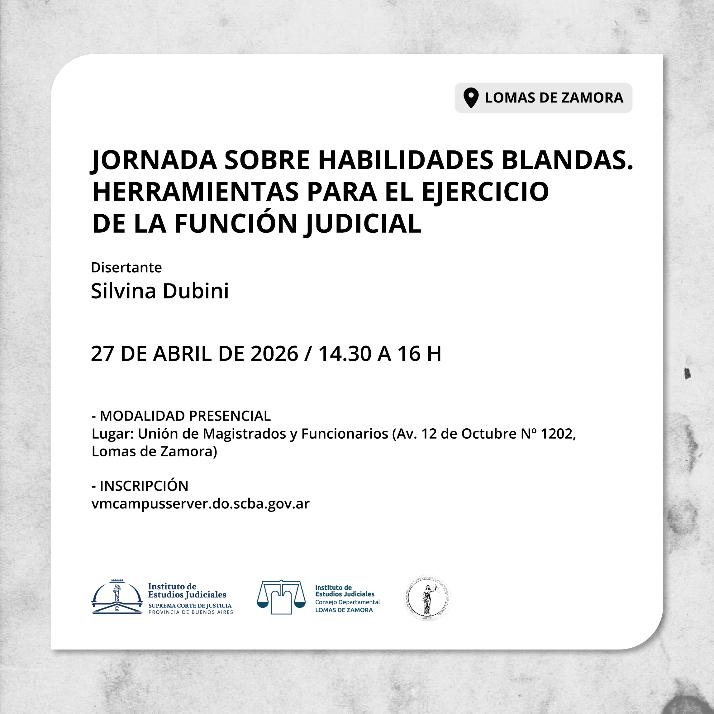 27-04-2026 | LOMAS DE ZAMORA – Jornada sobre habilidades blandas. Herramientas para el ejercicio de la función judicial