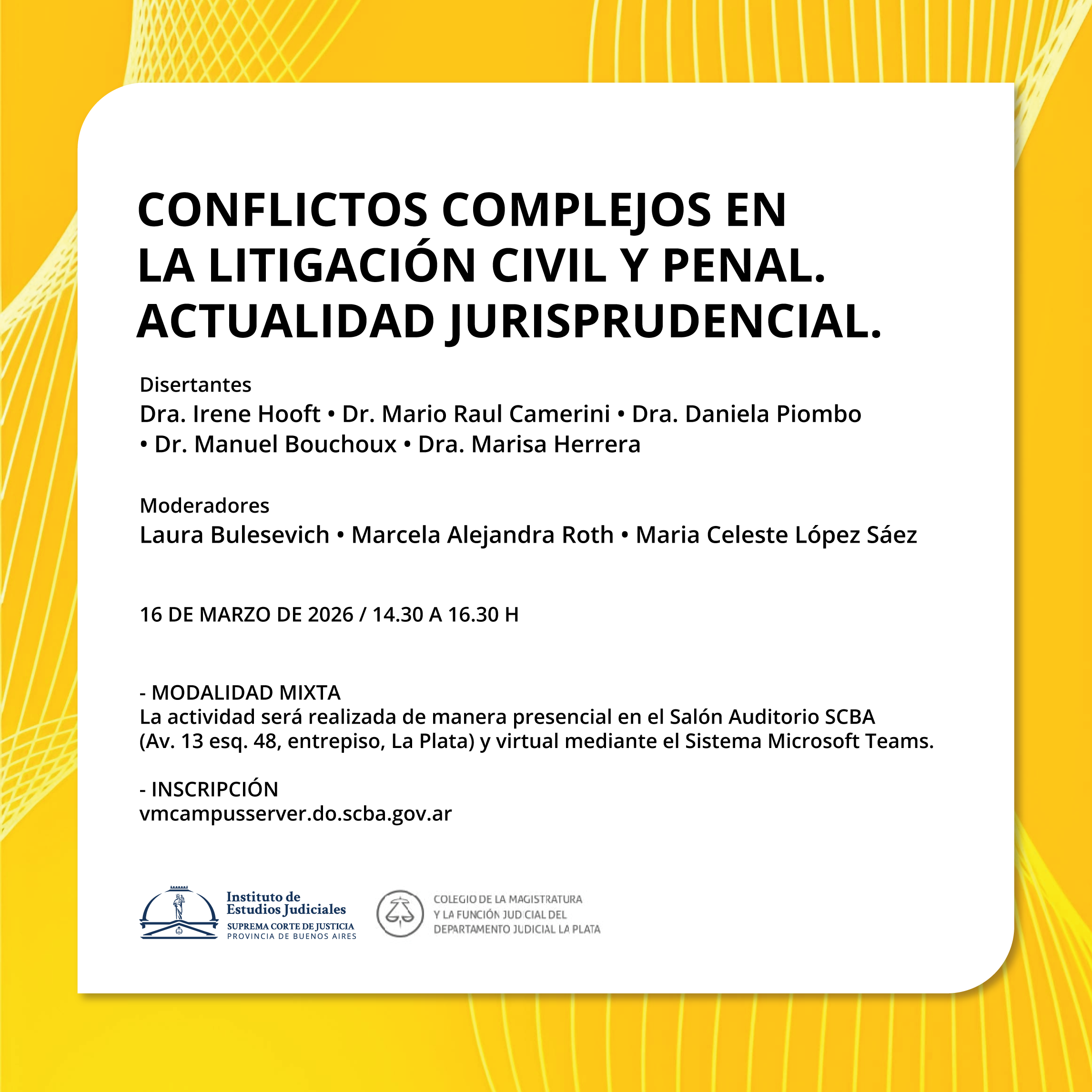 16-03-2026 | Conflictos complejos en la litigación civil y penal. Actualidad jurisprudencial.