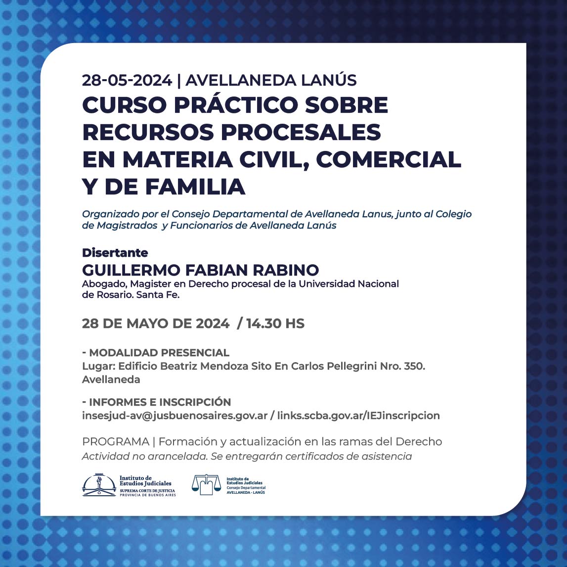 28-05-2024 | AVELLANEDA LAUNS - Curso práctico sobre recursos procesales en materia civil, comercial y de familia