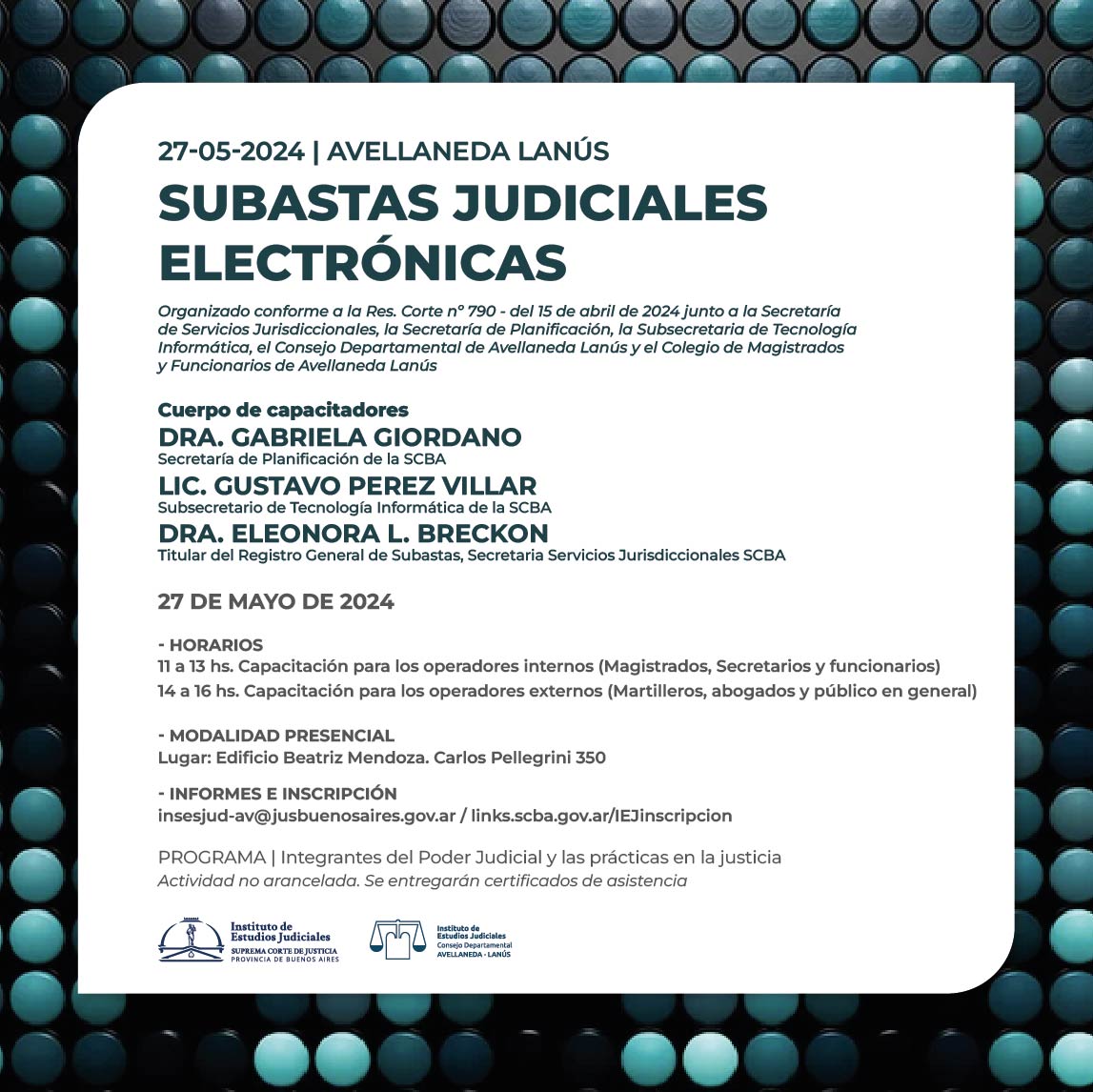 Organizado conforme a la Res. Corte nº 790 - del 15 de abril de 2024 junto a la Secretaría de Servicios Jurisdiccionales, la Secretaría de Planificación, la Subsecretaria de Tecnología informática, el Consejo Departamental de Avellaneda Lanus y el Colegio de Magistrados y Funcionarios de Avellaneda Lanús