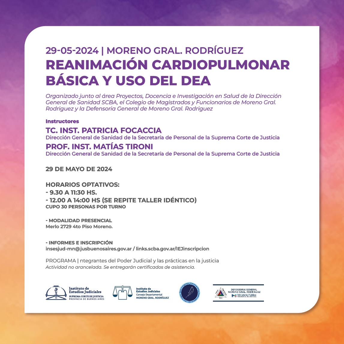 29-05-2024 | MORENO GRAL RODRIGUEZ - CURSO TALLER REANIMACIÓN CARDIOPULMONAR BÁSICA Y USO DEL DEA.