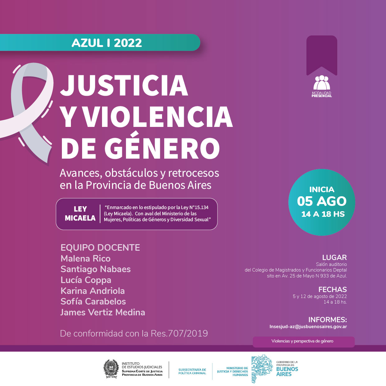 Organizado junto a la Subsecretaria de Política criminal del Ministerio de Justicia y Derechos Humanos de la Provincia de Buenos Aires, de conformidad con la Res.707/2019