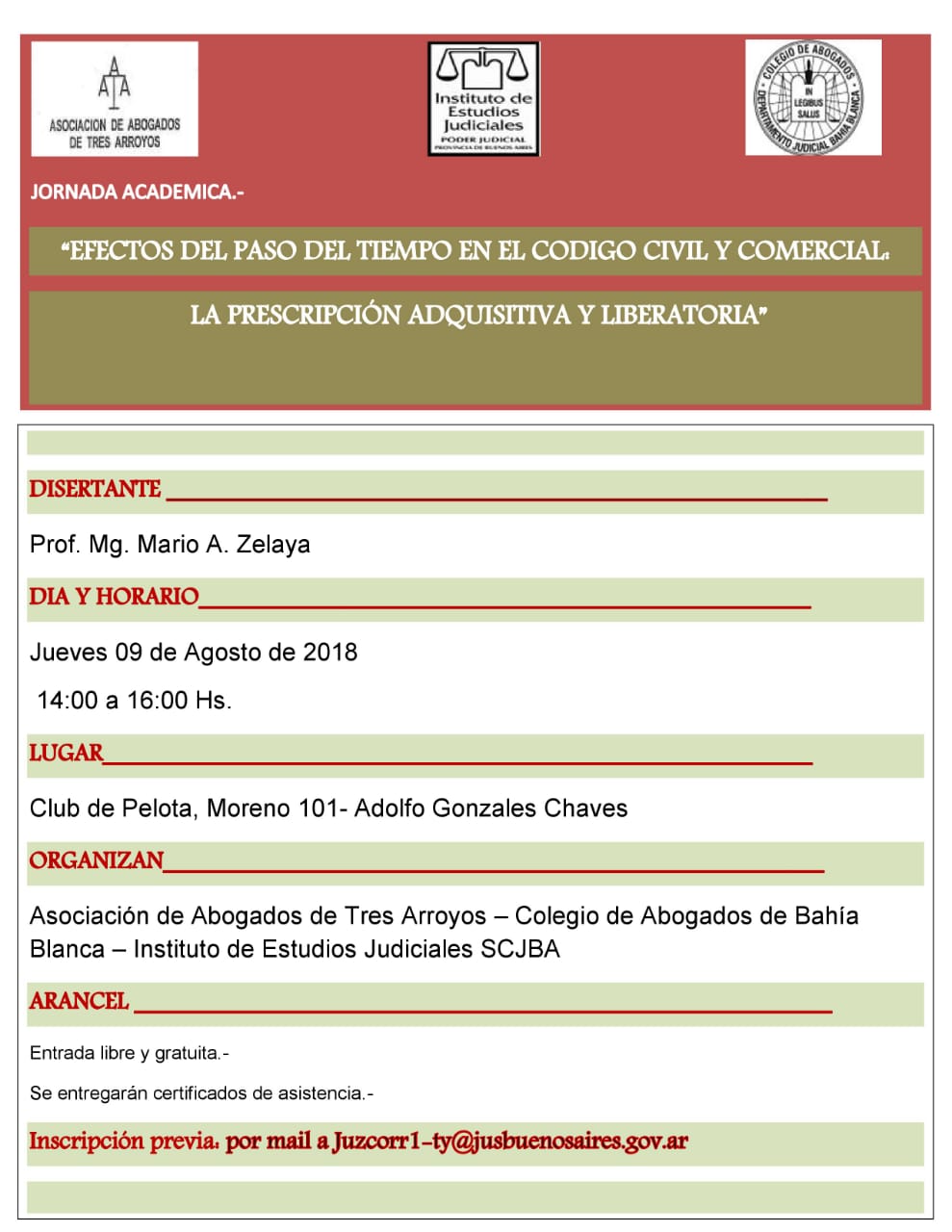Organizado por la Asociación de Abogados de Tres Arroyos, el Colegio de Abogados de Bahia Blanca y el Consejo Departamental de Bahia Blanca.