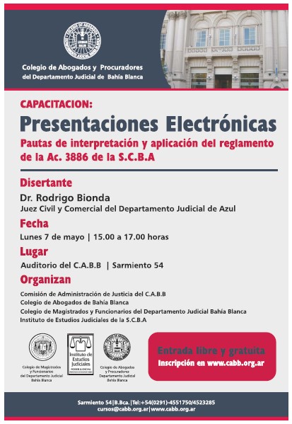 07-05-2018 | BAHIA BLANCA - Presentaciones electrónicas. Pautas de interpretación y aplicación del reglamento de la Ac.3886/18 SCBA