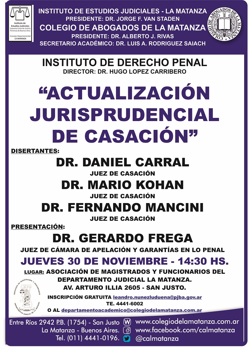 30-11-2017 | LA MATANZA - Actualización jurisprudencial de casación.