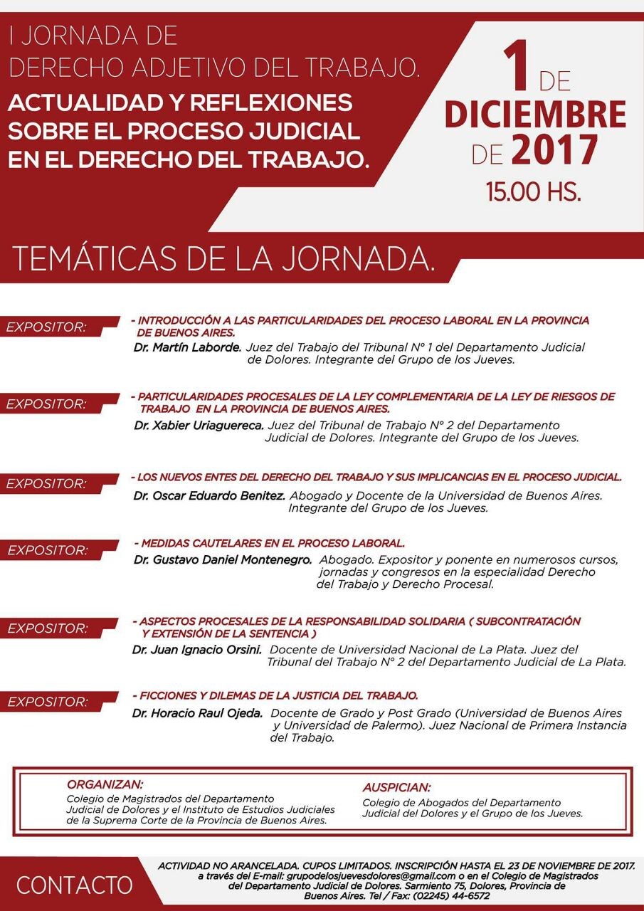 01-12-2017 | DOLORES - Jornada de Derecho adjetivo del trabajo.