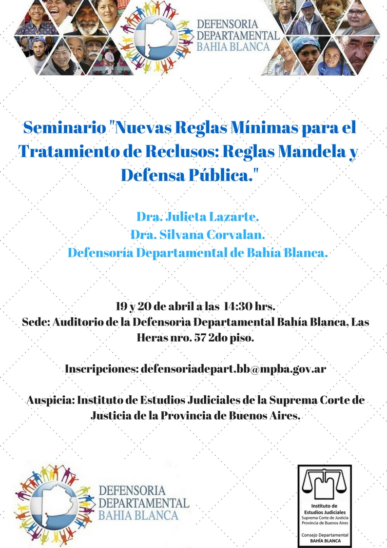 19-04-2017 | BAHIA BLANCA- Nuevas reglas mínimas para el tratamientos de reclusos. Reglas Mandela y Defensa pública.