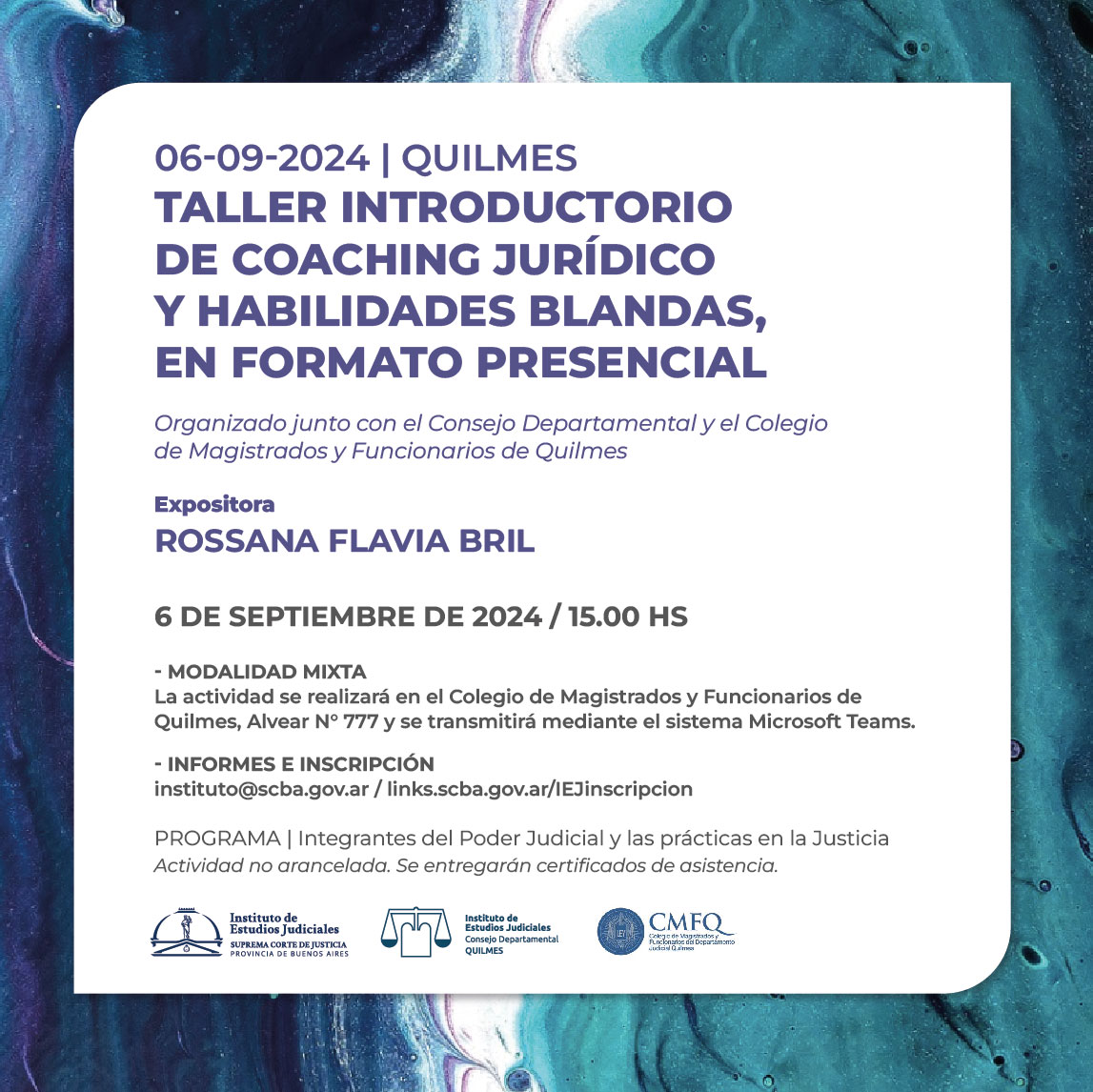 06-09-2024 | QUILMES -Taller introductorio de Coaching Jurídico y Habilidades Blandas, en formato presencial (a distancia )