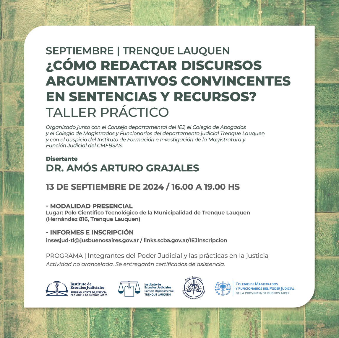 13-09-2024 | TRENQUE LAUQUEN - ¿Cómo redactar discursos argumentativos convincentes en sentencias y recursos? - Taller práctico