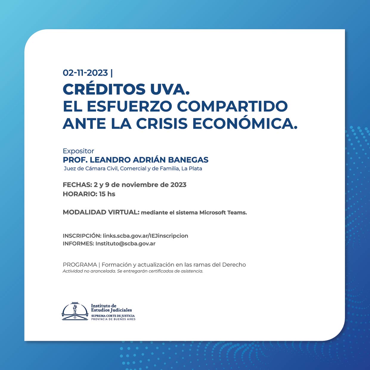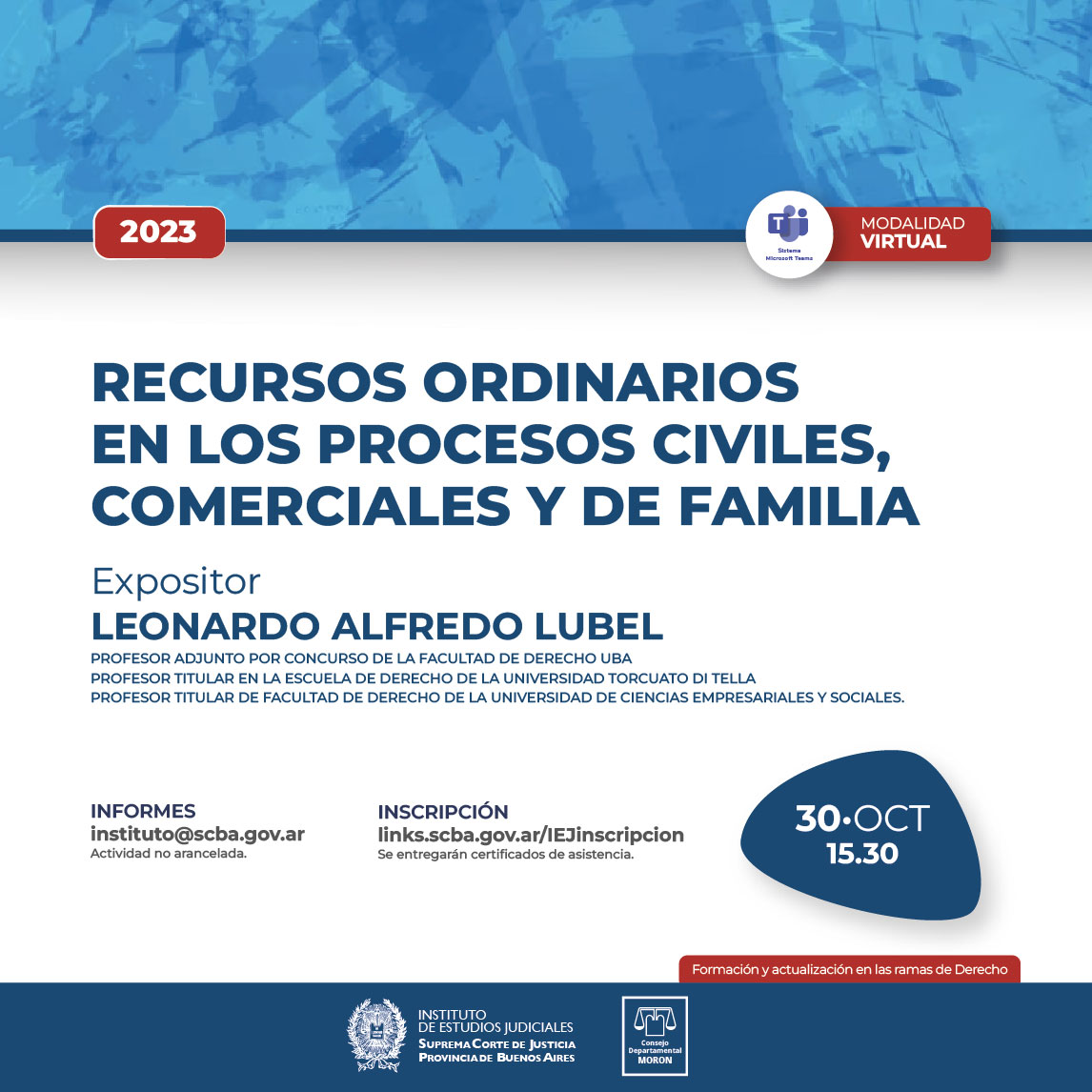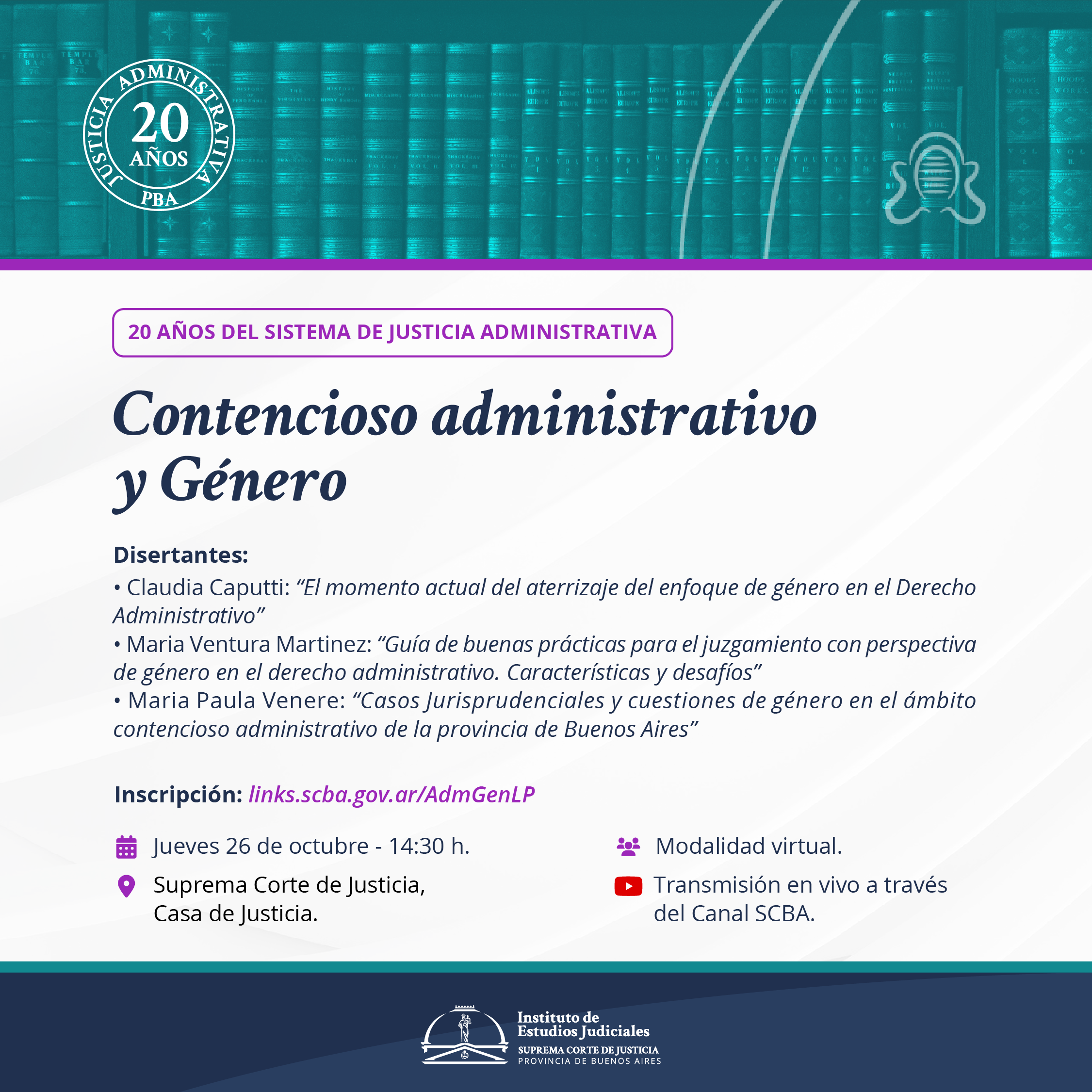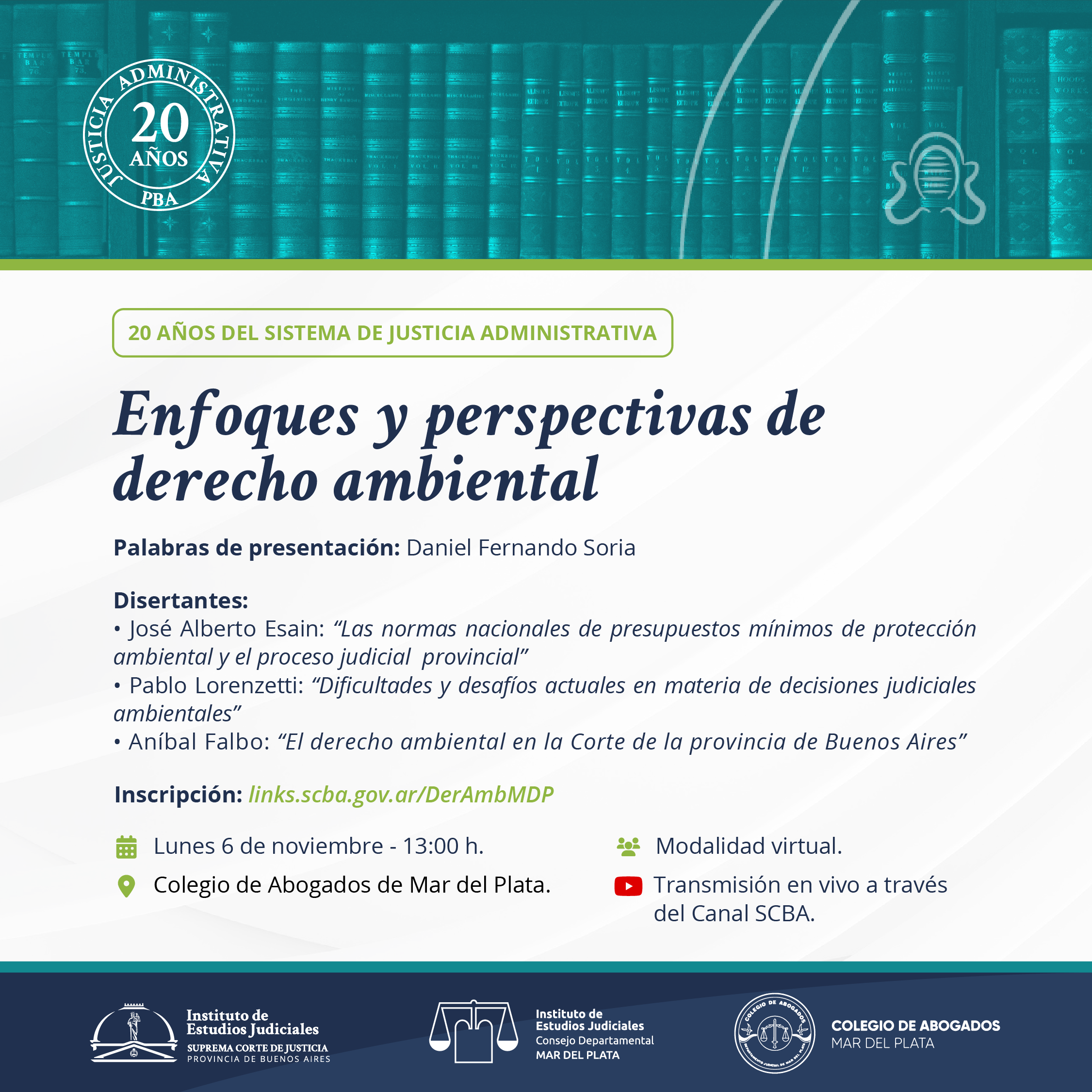 NOTA: La actividad será realizada bajo la modalidad virtual mediante transmisión en vivo por el canal de de la SCBA
