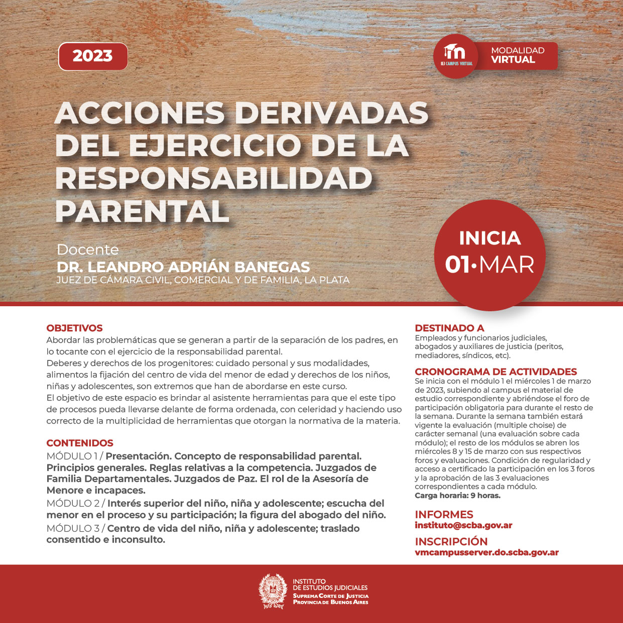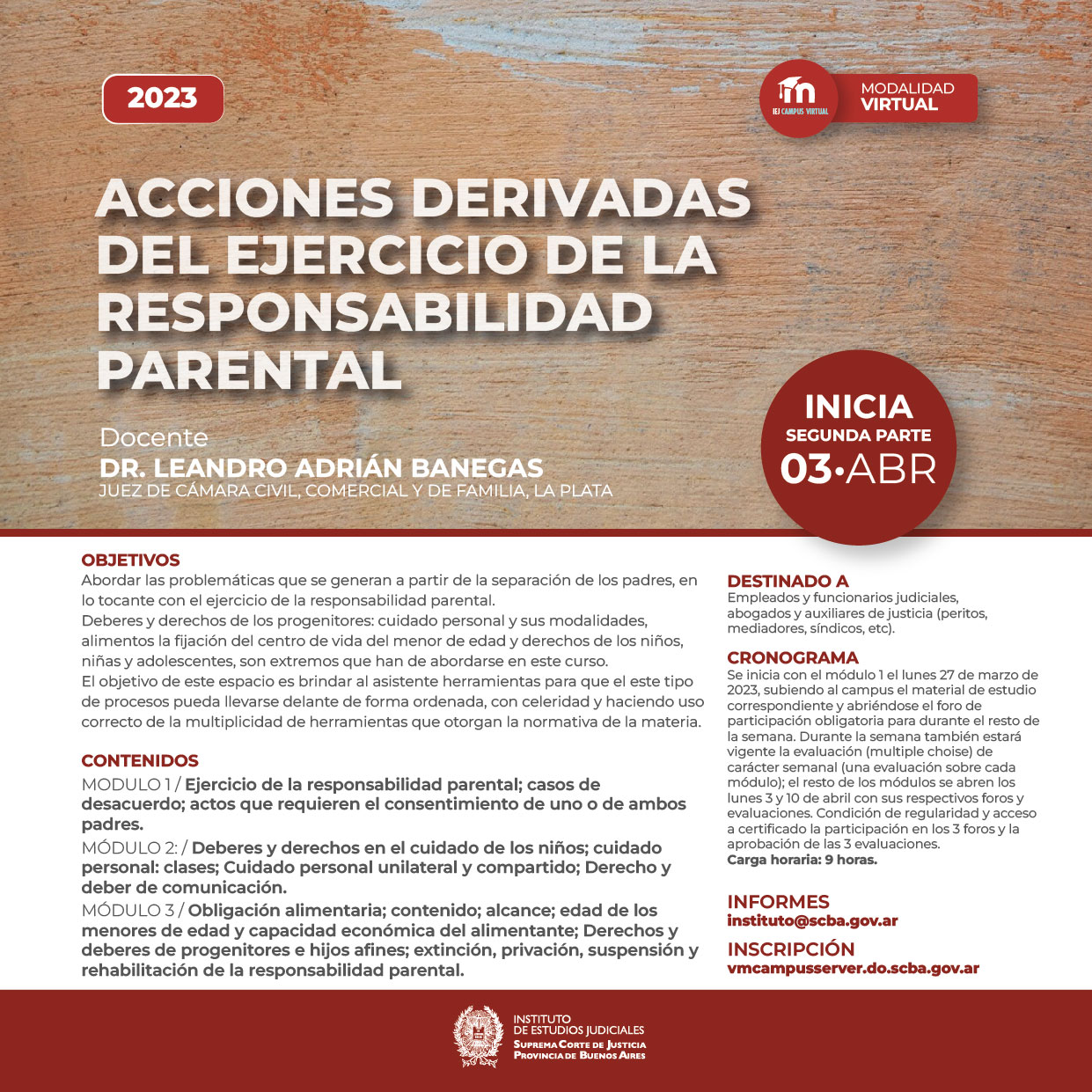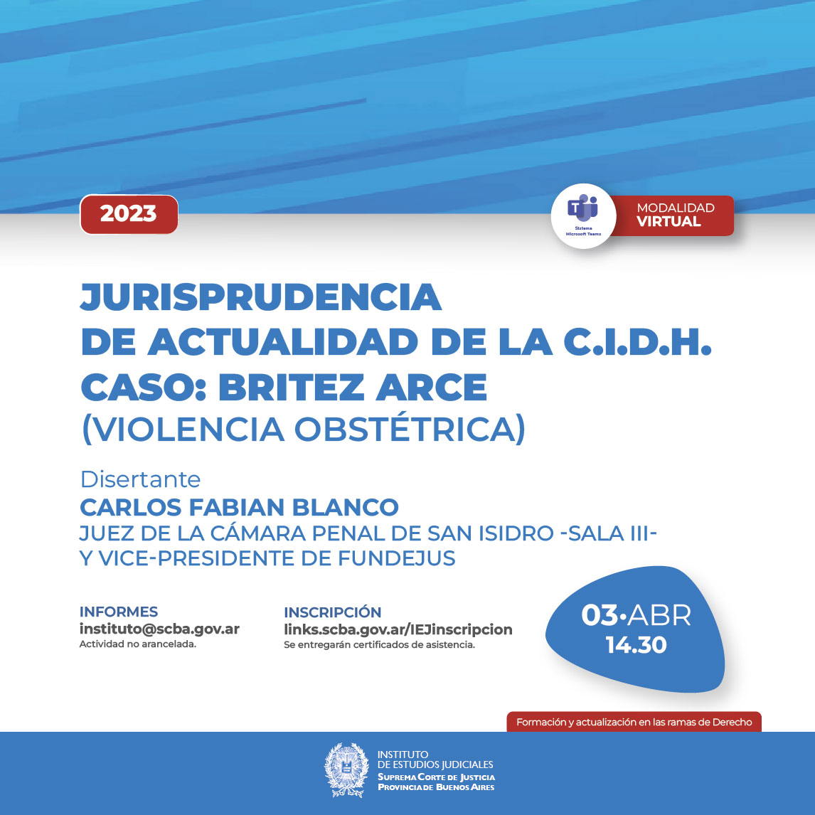 NOTA: La actividad será realizada bajo la modalidad virtual mediante el canal de la SCBA ( link en el vinculo asociado )