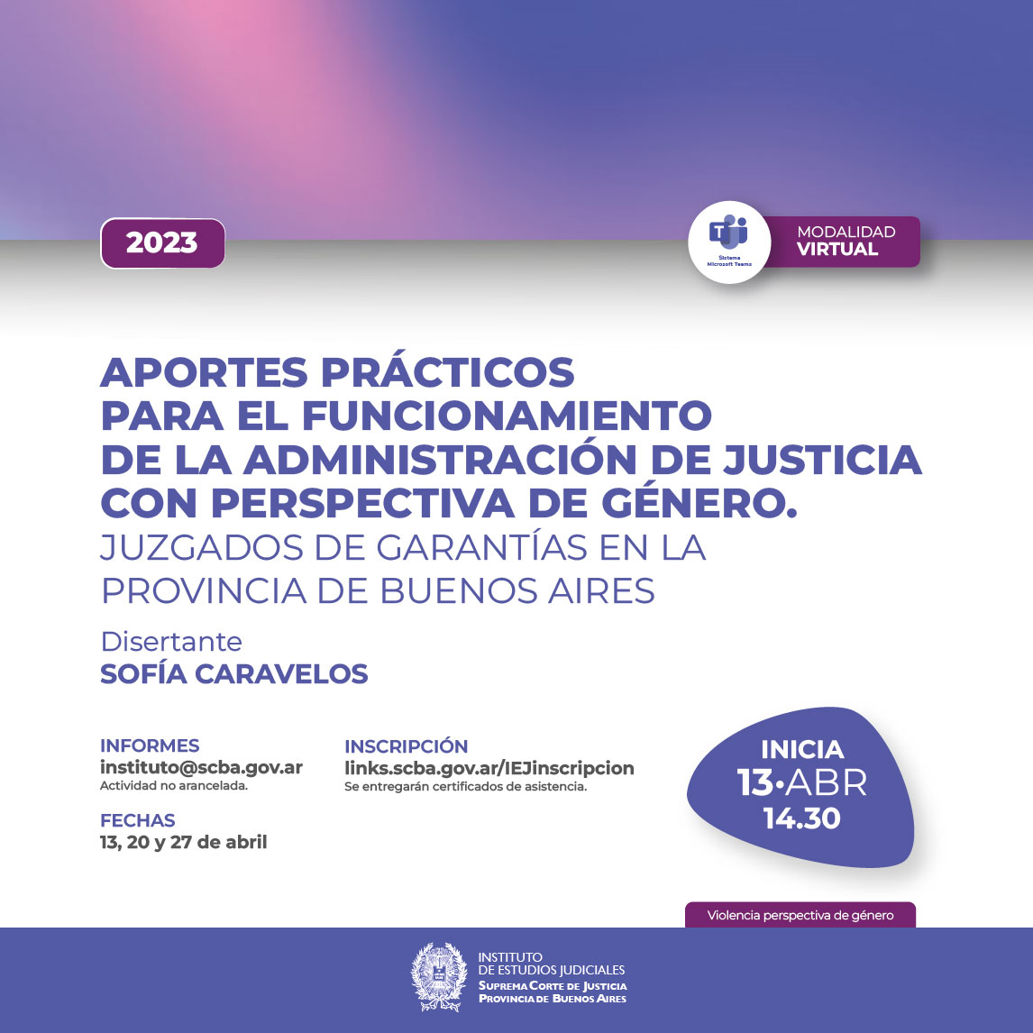13-04-2023 | Aportes prácticos para el funcionamiento de la administración de justicia con perspectiva de género. Juzgados de Garantías en la Provincia de Buenos Aires ( a distancia )