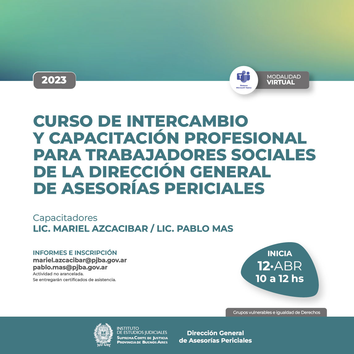 12-04-2023 | Curso de intercambio y capacitación profesional para Trabajadores Sociales de la Dirección General de Asesorías Periciales ( a distancia )