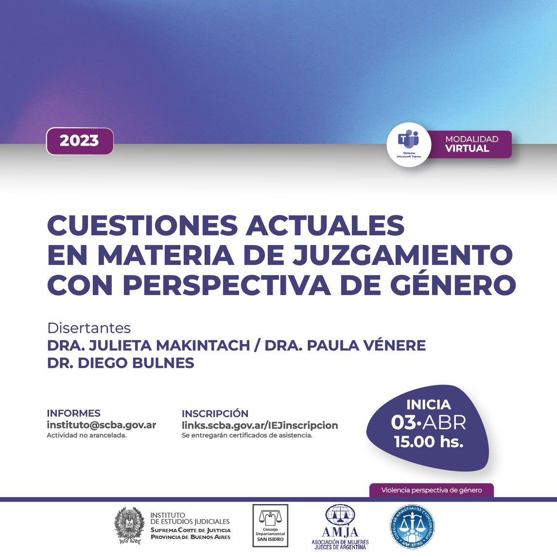 03-04-2023 | Cuestiones actuales en materia de juzgamiento con perspectiva de género ( a distancia )