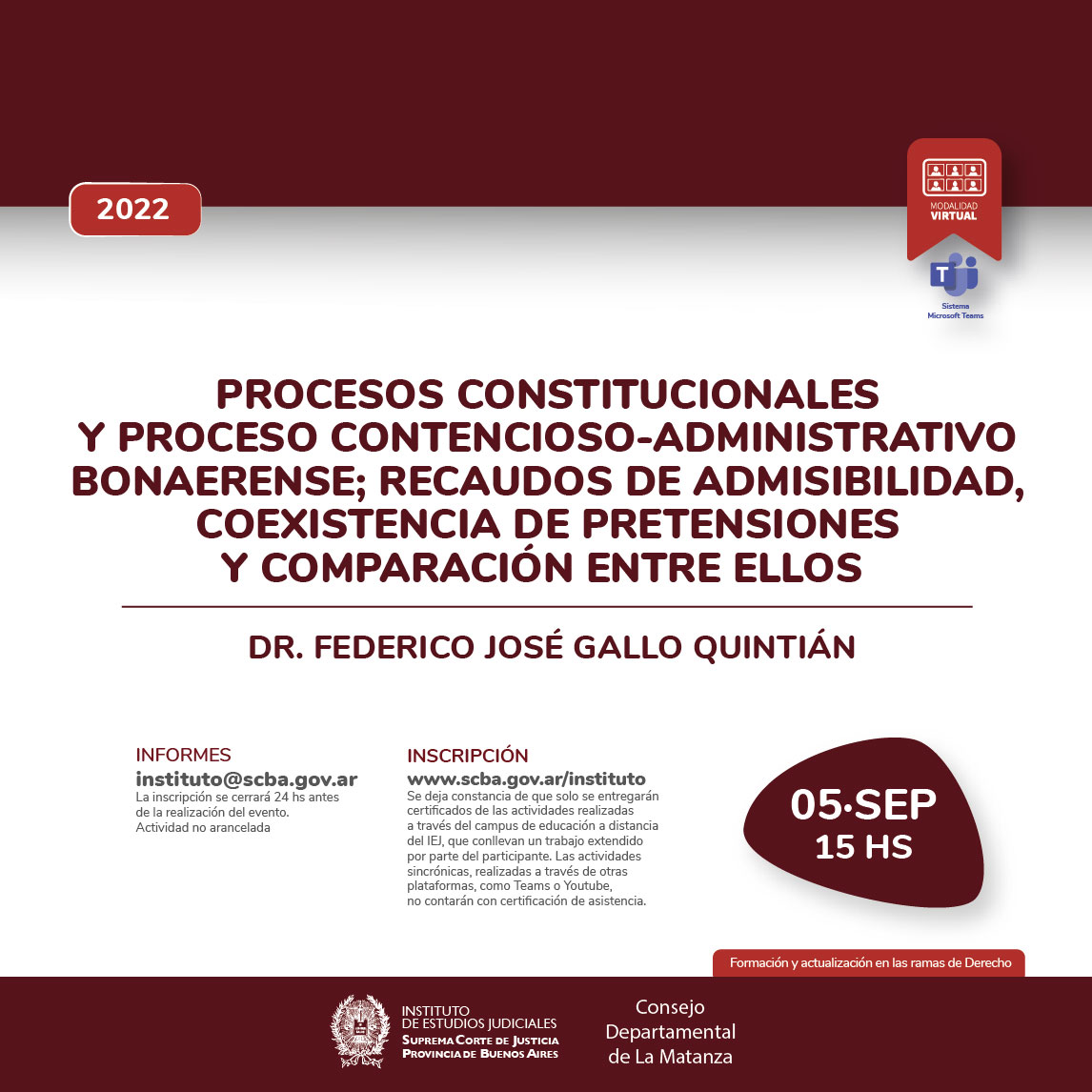 05-09-2022 | Procesos constitucionales y proceso contencioso-administrativo bonaerense; recaudos de admisibilidad, coexistencia de pretensiones y comparación entre ellos ( a distancia )