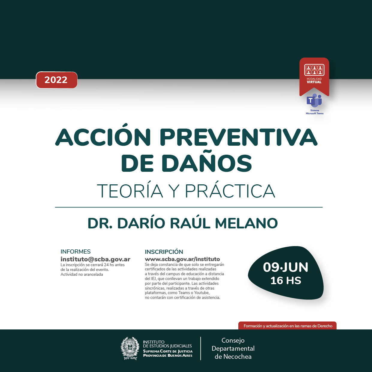 NOTA: La actividad será realizada bajo la modalidad virtual mediante el sistema Microsoft Teams, pudiendo acceder a través del link publicado en el vinculo asociado